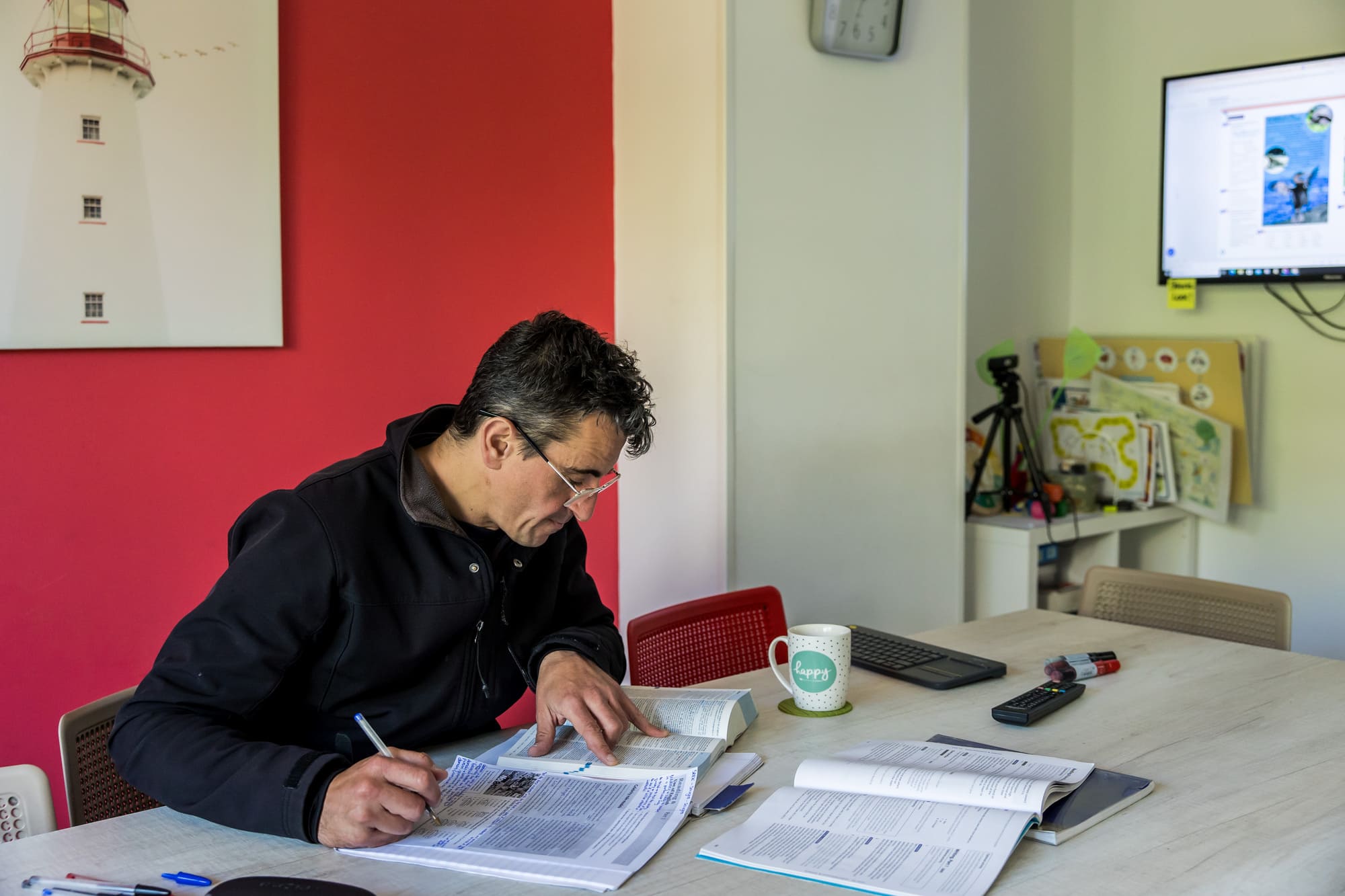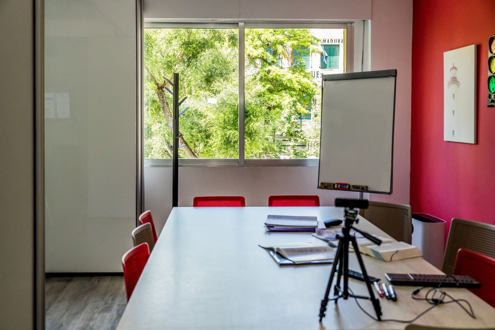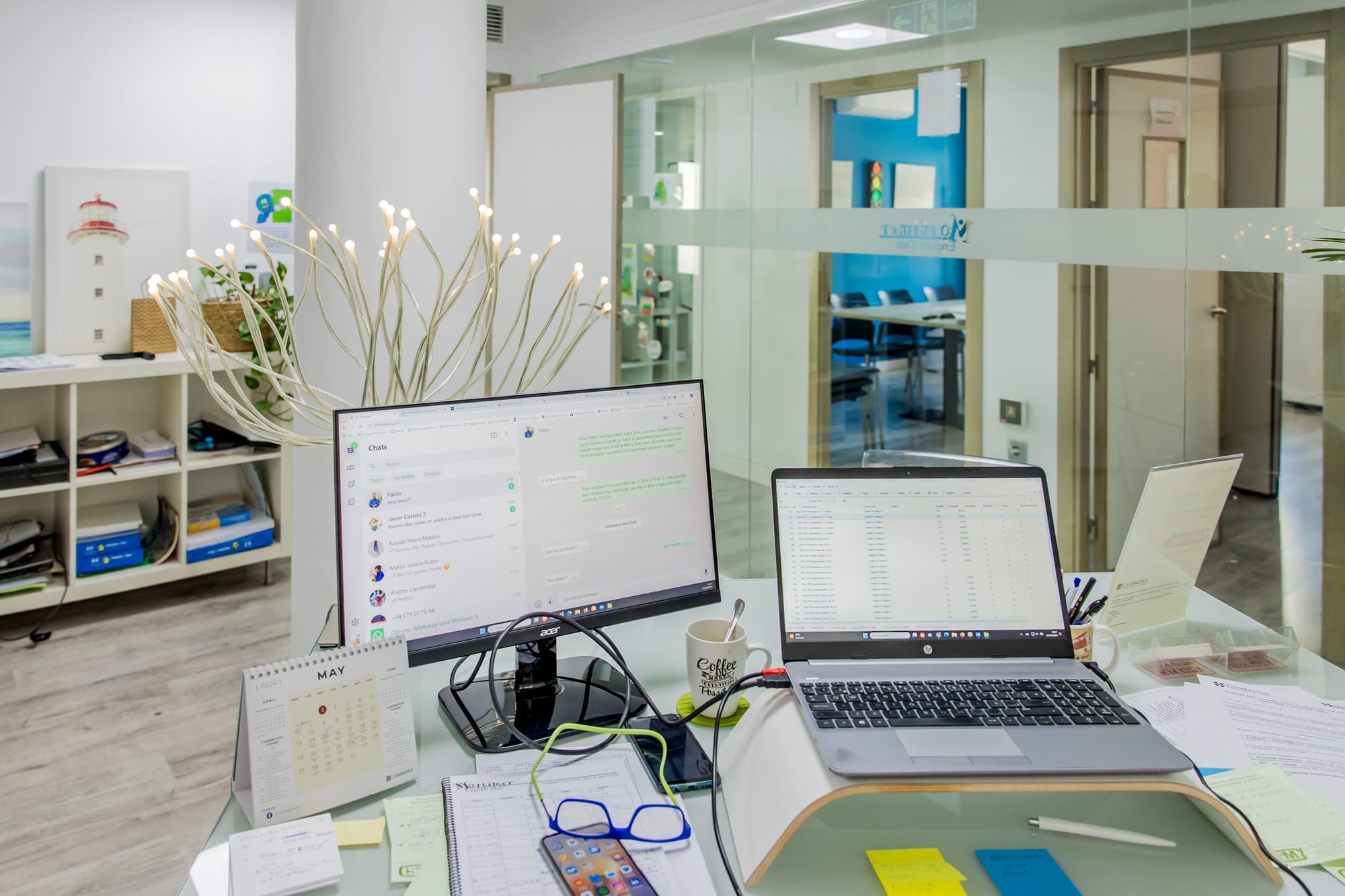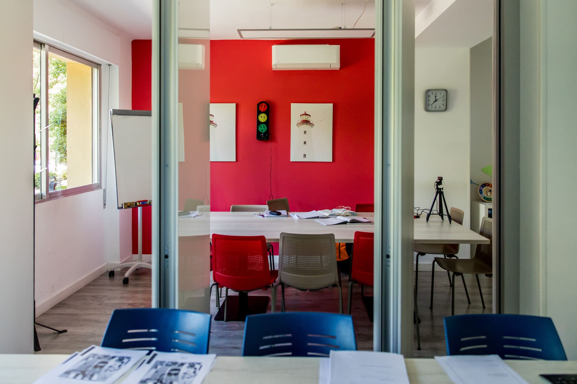 Finalmente, nuestro salón multiusos es un espacio versátil al servicio de todos. Aquí realizamos reuniones de padres, exámenes oficiales y simulacros de los mismos, y también es un lugar perfecto para disfrutar de un café o grabar vídeos. Este espacio está diseñado para adaptarse a las diversas necesidades de nuestros teachers y estudiantes, ofreciendo siempre un entorno cómodo y funcional.