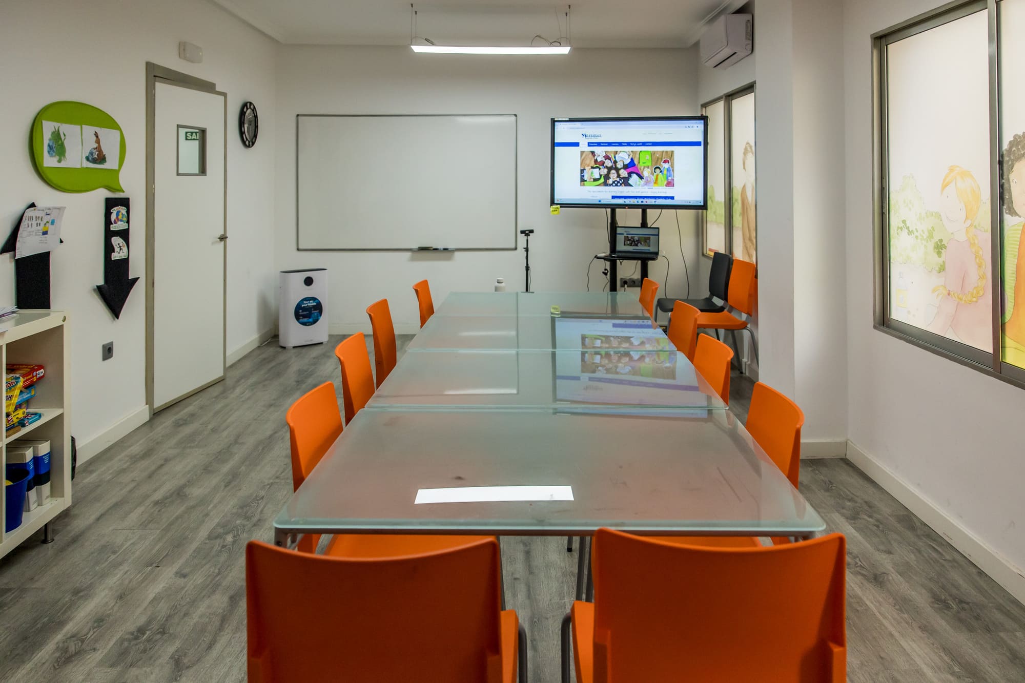 Nuestro centro está ubicado en una planta baja, lo que facilita el acceso para todos. Contamos con varias aulas diseñadas para proporcionar el máximo confort y un ambiente propicio para el aprendizaje. Todas nuestras aulas están equipadas con aire acondicionado y calefacción, asegurando una temperatura agradable durante todo el año. Además, hemos instalado purificadores de aire con filtro HEPA para garantizar un entorno limpio y saludable.