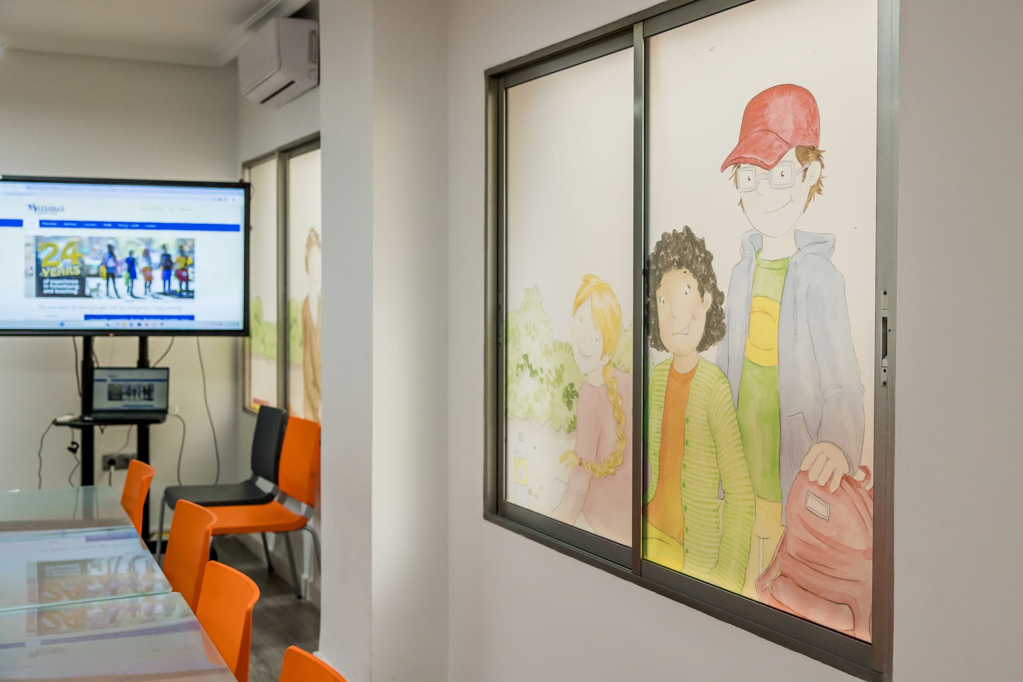 Nuestras aulas llevan nombres de ciudades emblemáticas del mundo angloparlante: Ivybridge (la villa de nuestro querido amigo Morty), Cape Town, Vancouver, Canterbury, San Francisco, Hong Kong y Sydney. Cada una de ellas está adaptada a las diferentes edades y metodologías de enseñanza, y está equipada con la última tecnología informática para facilitar también las clases online. Estos nombres no solo evocan lugares de los cinco continentes, sino que también inspiran a nuestros estudiantes a soñar con horizontes lejanos.